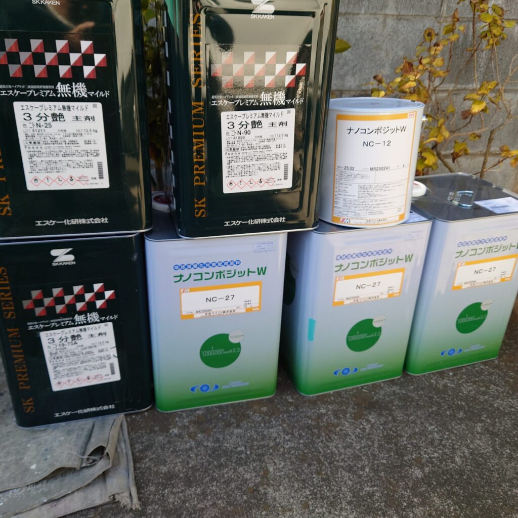 あと追加の外壁材の一本は今日の夕方に届きまして、外壁の上塗り材で都合4缶。