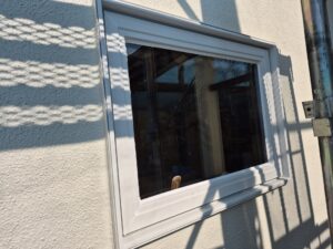 外壁と付帯部には無機系の塗料、屋根は美観のみなのでシリコン、サッシは今後お施主様がタッチアップしやすいように1液型をご希望されたのでファインパーフエクトトップにて吹きました。