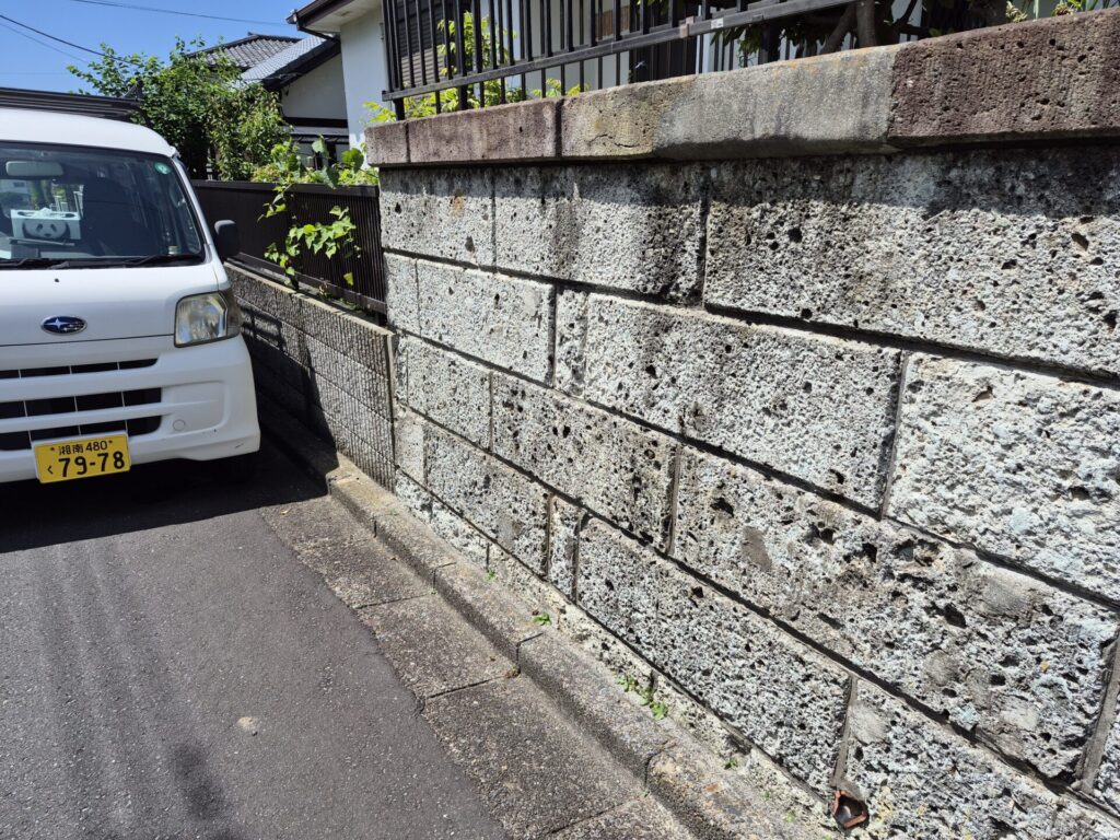 梅雨時でしたので長めに取ったアパートの工事が順調過ぎる程に早く終わりましたので工事と工事の隙間時間に以前、当店で外壁塗装を行いました西鎌倉のT様邸にて大谷石がポロポロ落ちてくるのは?と、ご相談を受けましてこの度ストーンコートを行いました。