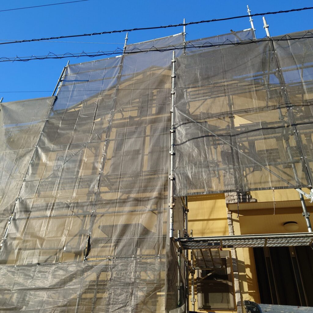 さあ、始まりました藤沢市の亀井野にてとても大きな戸建て外壁塗装工事。
