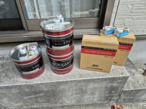 シーリング養生をしましてプライマーをたっぷりと塗ります。
