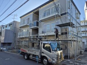 年末からイレギュラーにより年またぎとなっておりました藤沢市長後3階建てハイツの残工事の足場解体や最終チェック、掃き掃除と全工程が完了いたしました😅