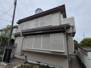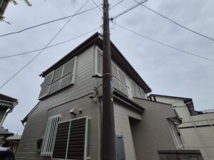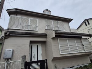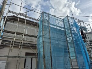 本日は湘南台の不動産やさんからご依頼いただきました藤沢市高倉の屋根、外壁塗装工事の足場解体とお引き渡しになります。