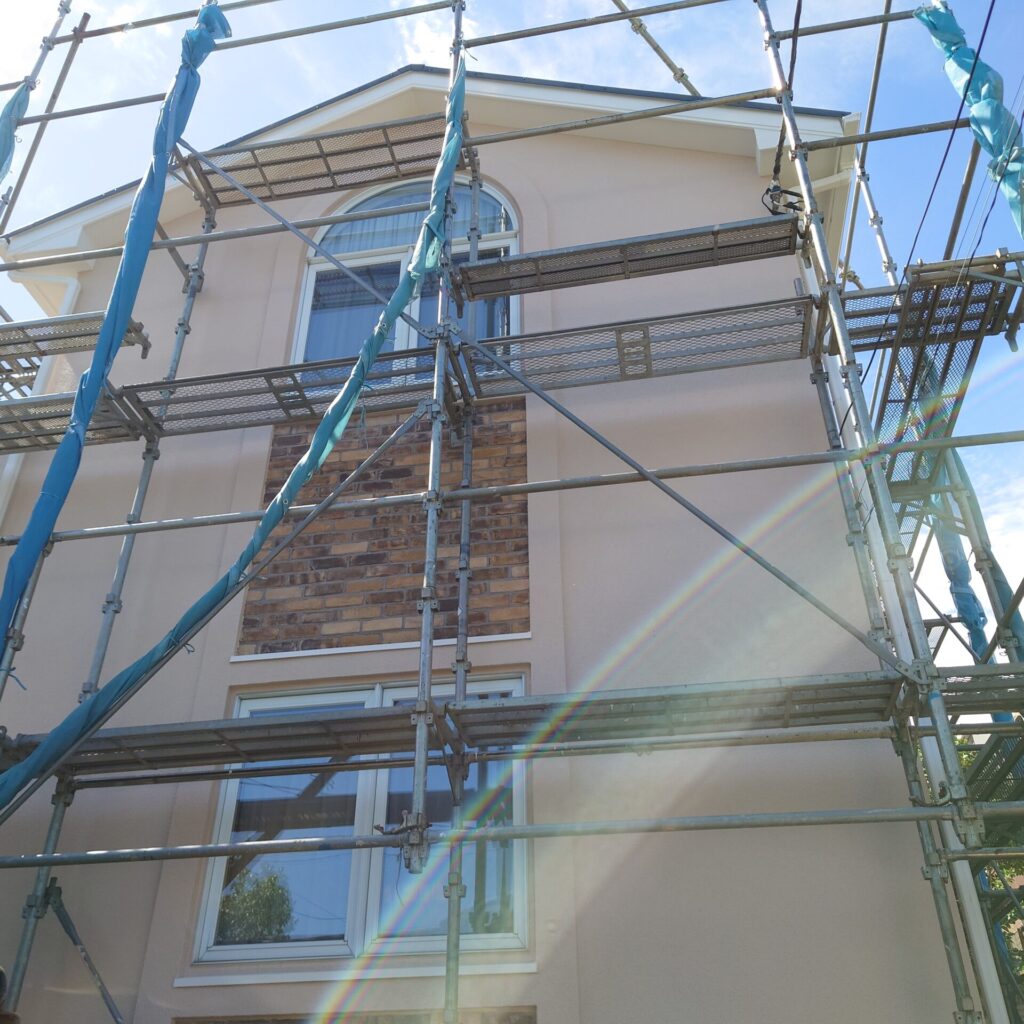 あとは明日の足場解体。内部塗装は明後日行いましていよいよお引渡しも近づいてまいりました。